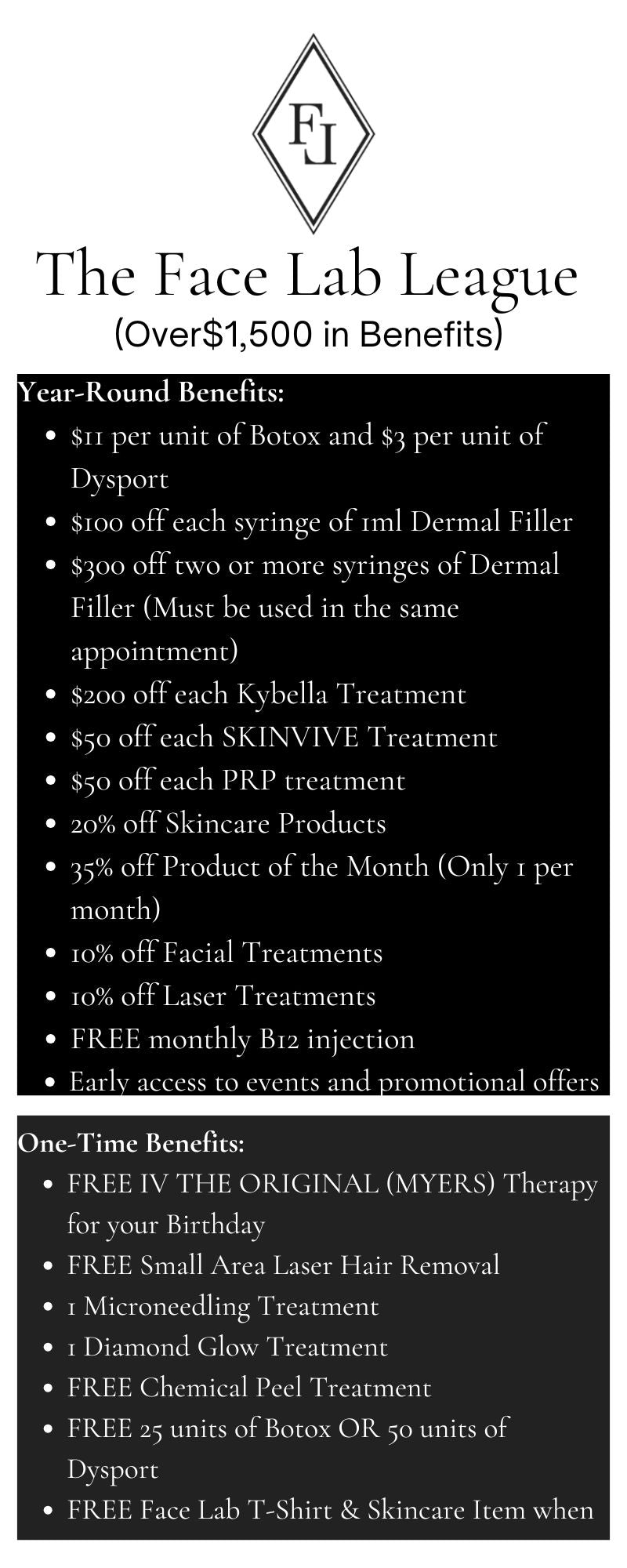 Experience the epitome of luxury and personalized care with our VIP Membership here at The Face Lab As a VIP member, you’ll enjoy an elevated level of pampering, fantastic deals, and exclusive privileges that are second to none. Indulge in a curated selection of premium treatments and services, tailored to meet your unique needs and desires.